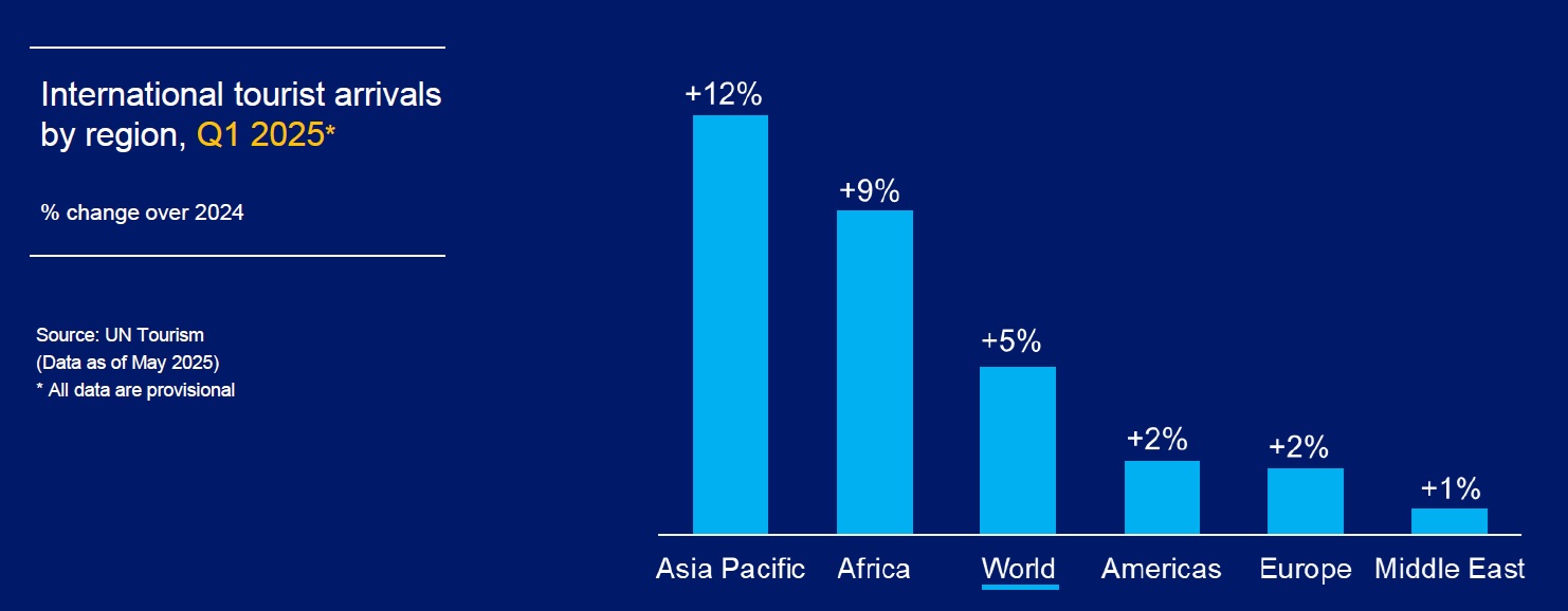 尽管面临挑战和更为谨慎的前景,联合国旅游组织仍未改变2025年3%至5%的增长预测。